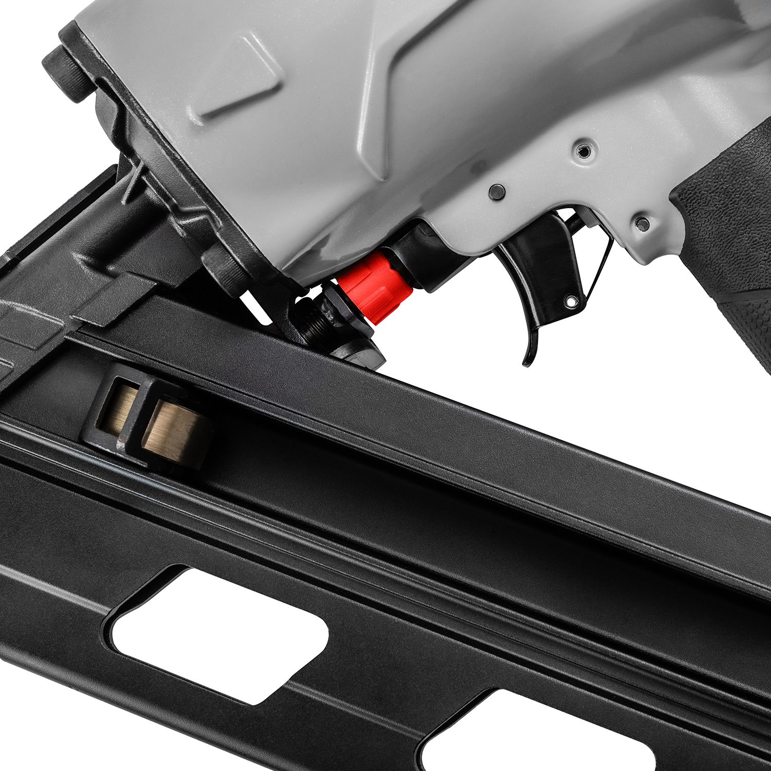 - Реечный пистолет с углом наклона магазина 34˚ сбалансирован для удобной работы одной рукой.